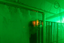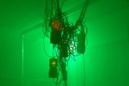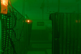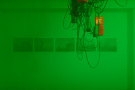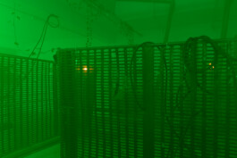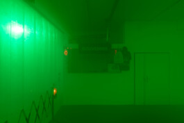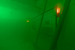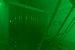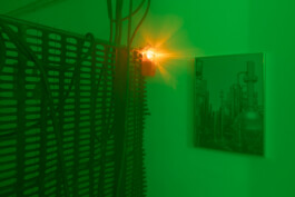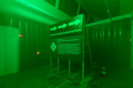 The longer we wander, the more the illusion of an industrial site begins to unravel. It reveals itself as a collage, an imagined environment that fails to fully reflect its real-life counterparts. In these gaps, the installation emerges as a composition of fragments that together construct a nostalgic vision of “the industrial” as part of the 20th century. Drawn from a broad range of fleeting images hovering between techno-futurism and impending apocalypse, it does exert a strange, magnetic pull and points towards what is omitted in this exaggerated interplay of codes of the industrial imagery.